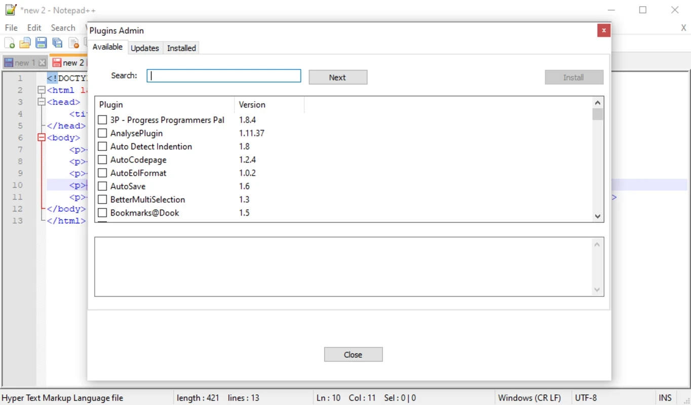 Jika Anda mengelola dokumen teks dan ingin mengerjakan bagian tertentu, aplikasi ini menawarkan opsi pencarian dan penggantian untuk memudahkan Anda. Anda perlu mengeklik bagian 'Cari' dan memilih opsi 'Temukan' atau 'Ganti'. Selain itu, Anda juga dapat meningkatkan fungsionalitas dengan membuka 'Manajer Plugin' dan memasang plugin yang diinginkan.